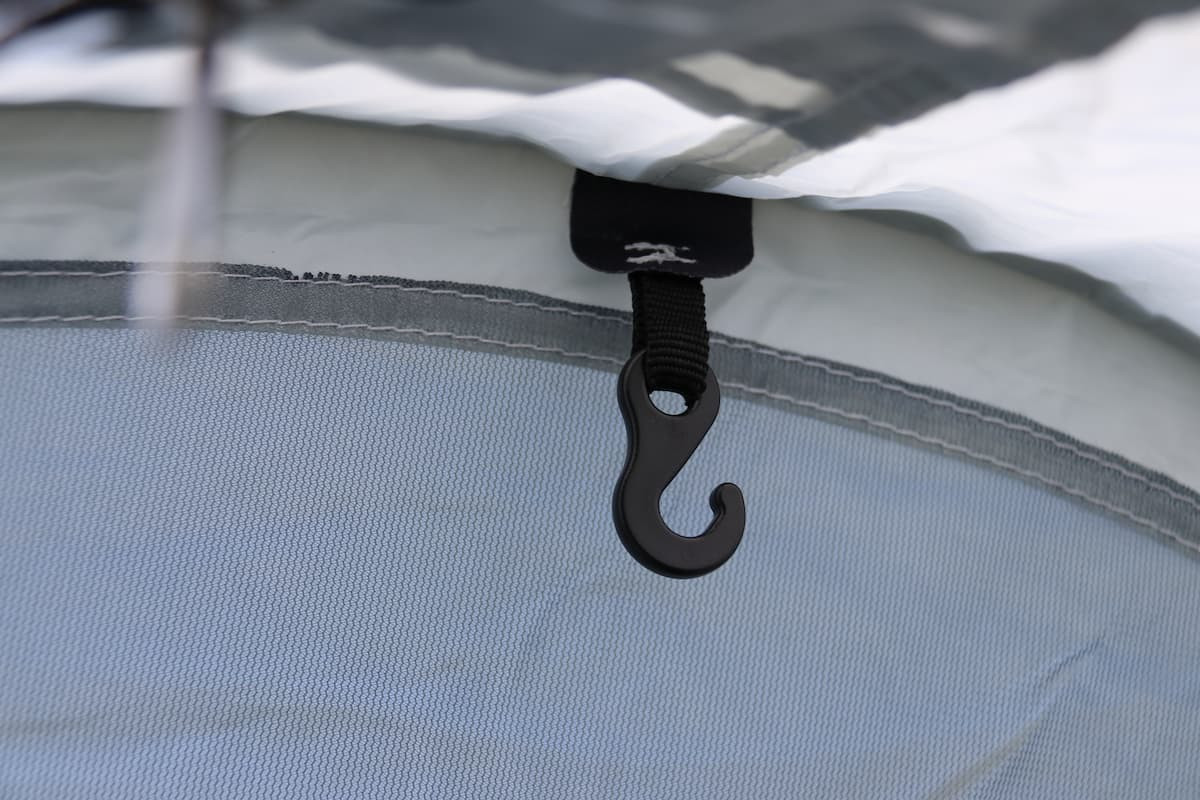 L'accès est facilité par une porte latérale à double fermeture éclair, qui se transforme en auvent à l’aide des deux mâts réglables inclus, vous offrant ainsi un espace de vie protégé en extérieur. Grâce à son système de gonflage rapide, l’installation se fait en un instant, vous permettant de profiter pleinement de votre aventure sans perdre de temps.