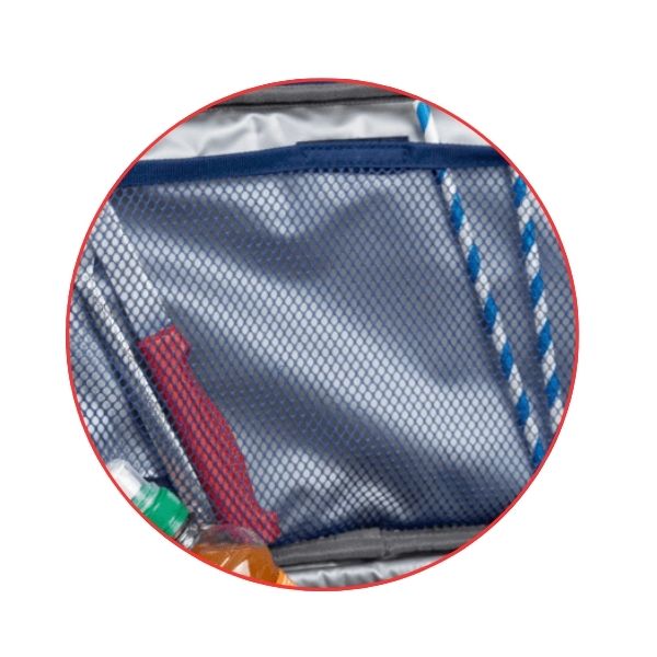 Le grand compartiment isotherme du sac glacière vous permet de garder une variété d’aliments au frais, que ce soit des sandwiches, des fruits, des boissons ou d’autres denrées périssables. De plus, il est doté d’une poche avant zippée où vous pouvez ranger des petits objets essentiels comme des serviettes, des ustensiles ou des condiments. Un poche filet sur la partie supérieure intérieure offre un espace de rangement supplémentaire pour les articles que vous souhaitez garder à portée de main.