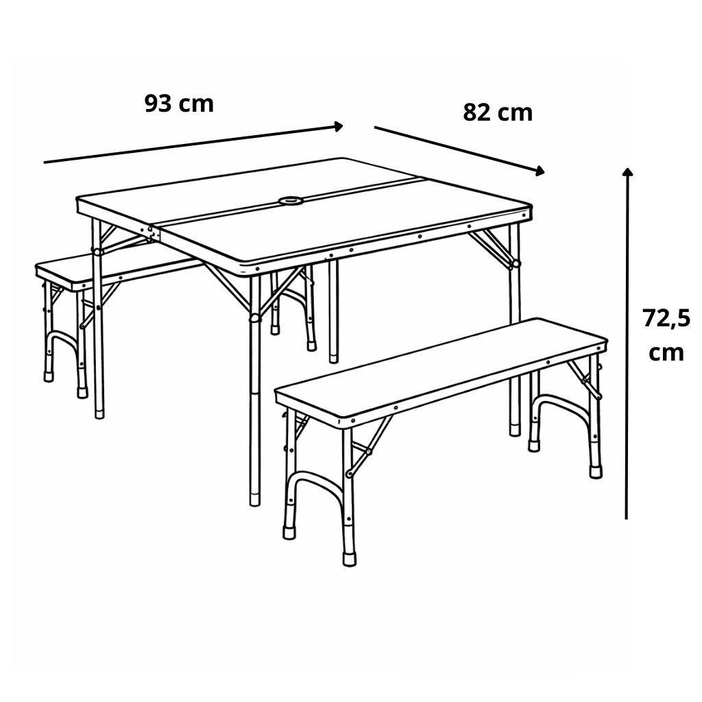 Conçue pour être facile à transporter et à ranger, cette table se distingue par son système de pliage ingénieux. Les bancs et le plateau se replient pour former une valise compacte, équipée d'une poignée de transport, facilitant son déplacement et son stockage. Grâce à ce format pratique, elle se glisse aisément dans le coffre d’une voiture ou dans un espace de rangement réduit.